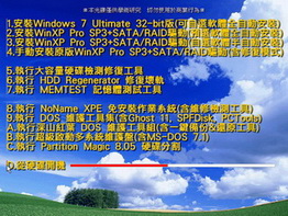 軟體名稱:Windows 7+WinXP SP3+40套軟體自動安裝選單+NoName XPE 繁體中文版 重灌首選軟體(DVD一片裝)